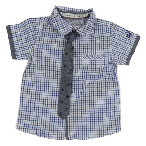 2Set - Modro-bílo-tmavomodrá kostkovaná košile + tmavomodrá melírovaná kravata s kotvami Debenhams