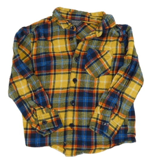 Hořčicovo-tmavomodro-oranžová kockovaná flanelová košeľa Primark