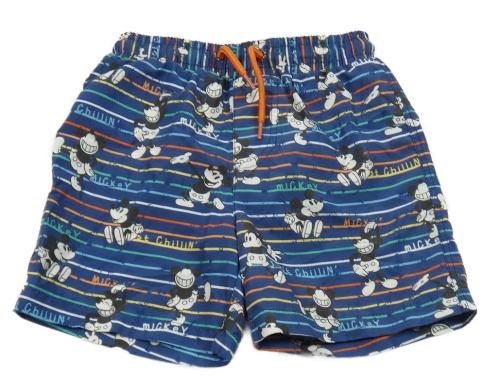 Tmavomodro-farebné pruhované plážové kraťasy s Mickeym Disney