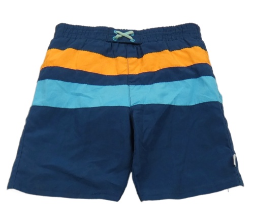 Tmavomodro-oranžové plážové kraťasy s pruhmi