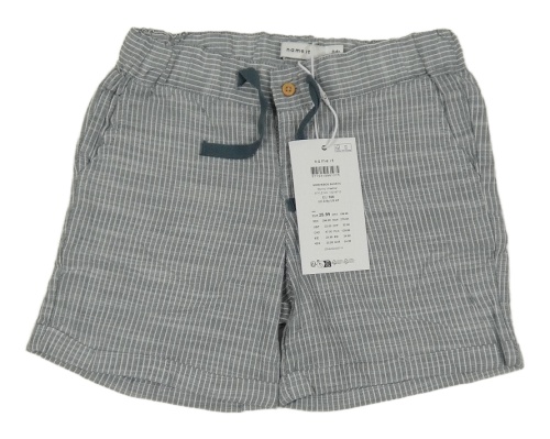 Nové - Tmavomodro-biele pruhované plátenné kraťasy Name it