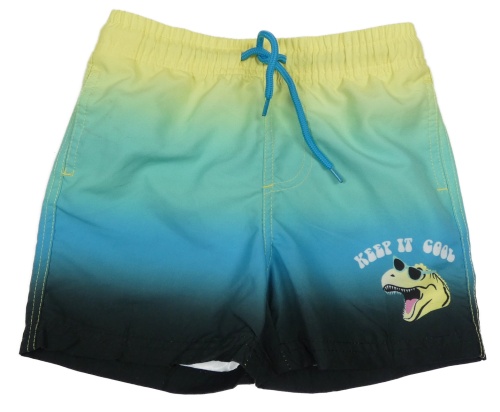 Žlto-modro-čierne plážové kraťasy s dinosaurom