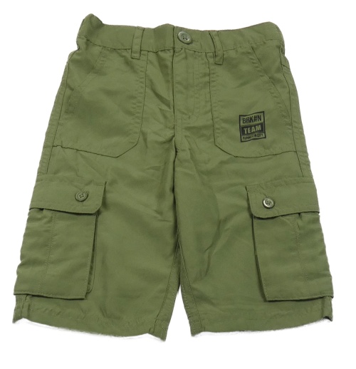Khaki šušťákové cargo kraťasy s nápisom