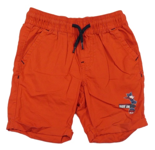 Červené plátenné kraťasy so šipkami a nápismi lupilu