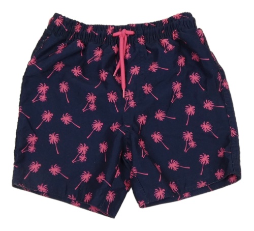 Tmavomodré plážové kraťasy s růžovými palmami PRIMARK