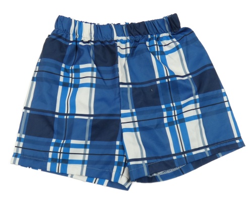 Tmavomodro-modro-biele kockované plážové kraťasy