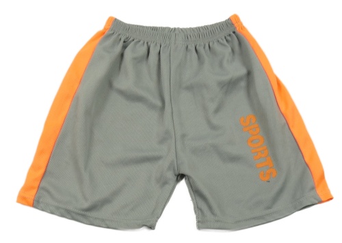Sivo-neónově oranžové športové kraťasy s nápisom