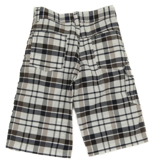 Bielo-tmavomodro/hnědé kockované kraťasy s vreckom