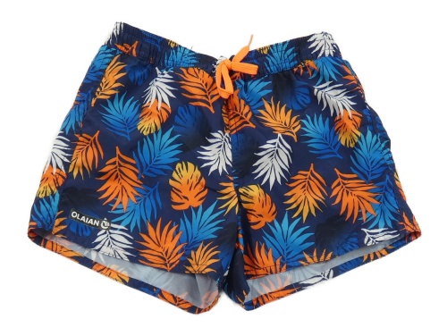 Tmavomodro-farebné plážové kraťasy s listami Decathlon