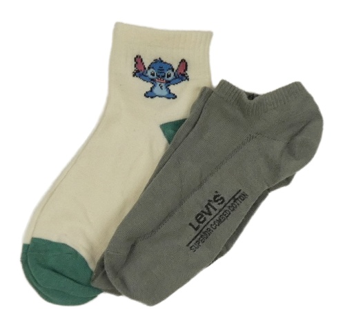 2x ponožky - smetanovo-zelené so Stitchem + šedé členkové