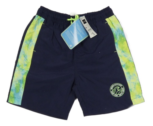 Nové - tmavomodro-zeleno/modré plážové kraťasy so znakom s nápismi St. Bernard