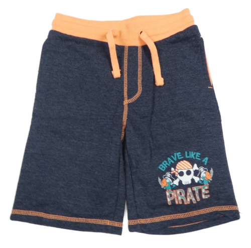 Tmavomodro-neónově oranžové teplákové kraťasy s lebkou X-mail