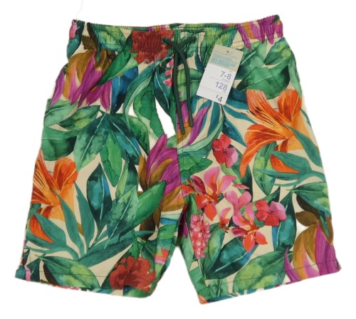 Nové - Smetanovo-zeleno-farebné kvetované plážové kraťasy s listami Primark