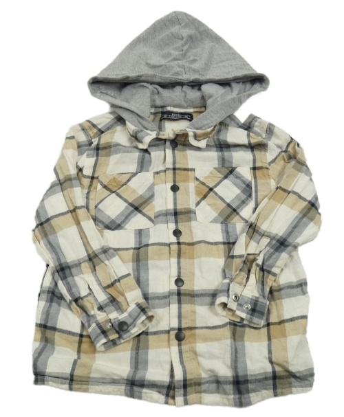 Smetanovo-béžovo-čierna kockovaná košeľa s kapucňou
