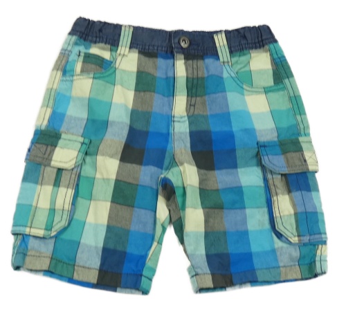 Modro-zelené kockované plátenné cargo kraťasy Nutmeg