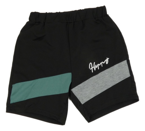 Čierno-sivo-zelené kraťasy s nápisom