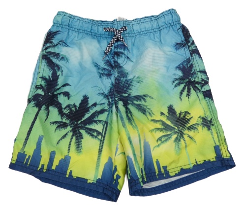 Světlemodro-žlté plážové kraťasy s palmami C&A