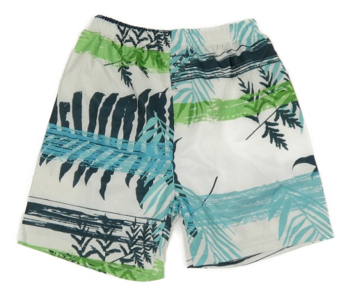 Bielo-modro-zelené šušťákové kraťasy s listami