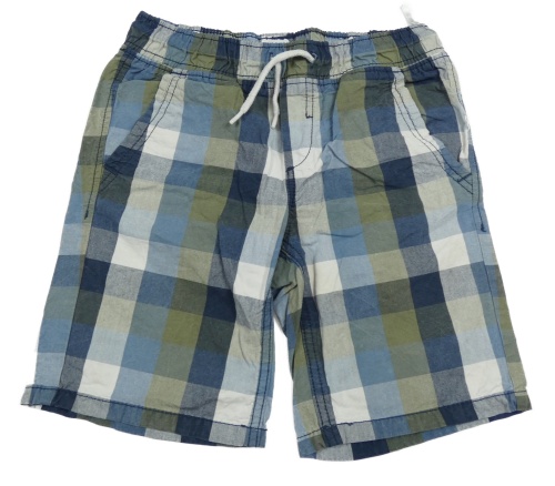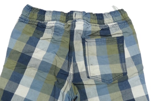 Tmavomodro-kaki-biele kockované plátenné kraťasy C&A