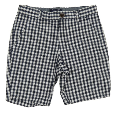 Tmavomodro-biele kockované plátenné kraťasy Next