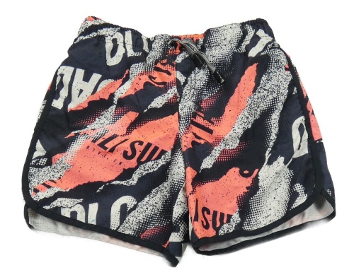 Tmavomodro-bielo-ružové plážové kraťasy s nápismi