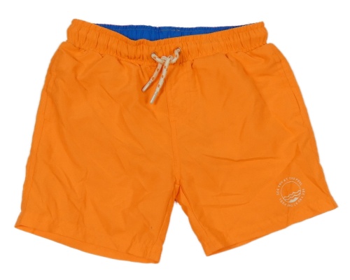 Kriklavoě oranžové plážové kraťasy so znakom s nápismi FISH&CHIPS
