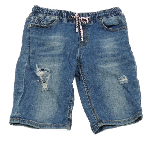 Modré teplákové rifľové kraťasy s vyšúchaním