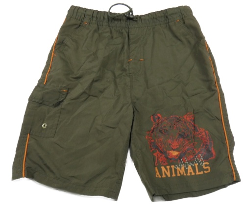 Khaki šušťákové široké kraťasy s tigrom a vreckom