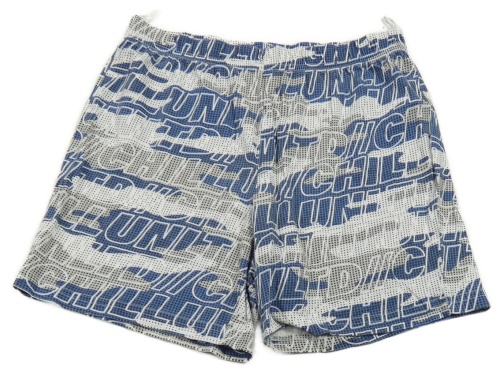 Modro-sivé vzorované bavlnené kraťasy s nápismi