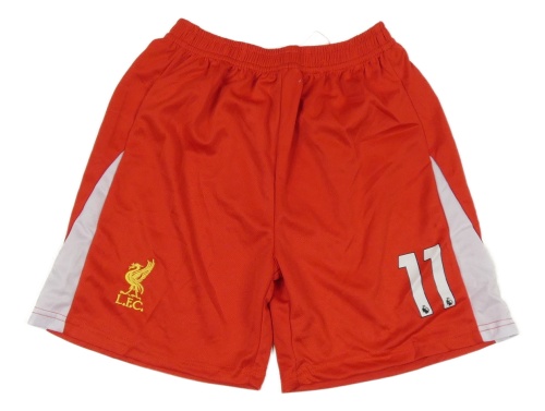 Červeno-bílé sportovní fotbalové kraťasy L.F.C. a číslom