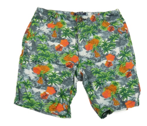 Sivo-bielo-zelené plátenné kvetované kraťasy s ananásmi Next