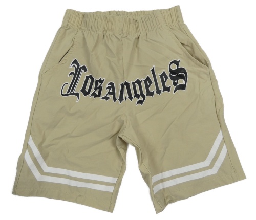 Béžové šušťákové kraťasy s nápisom