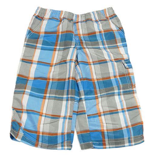 Modro-sivo-bielo-oranžové kockované capri šušťákové nohavice s vreckom HOT&SPICY