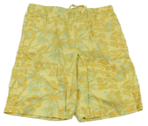 Žlté plátenné kraťasy s palmami a kvetmi a nápismi H&M