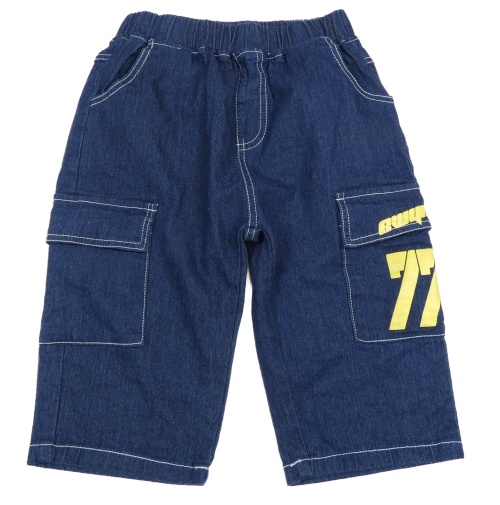 Tmavomodré rifľové cargo kraťasy s nápisom