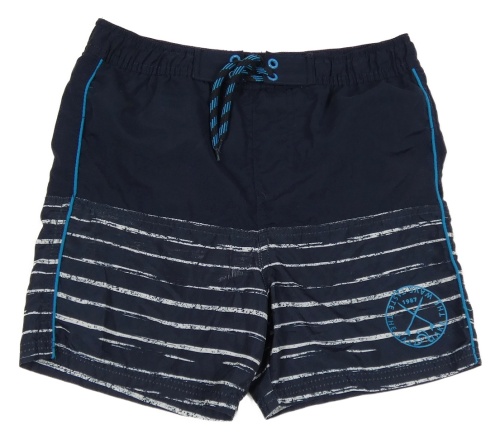 Tmavomodré pruhované plážové kraťasy s potlačou Yigga