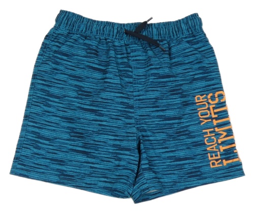 Modrozeleno-tmavomodré pruhované melírované plážové kraťasy s nápismi YIGGA