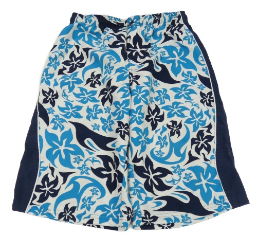 Modro-tmavomodré kvetované plážové kraťasy s pruhmi