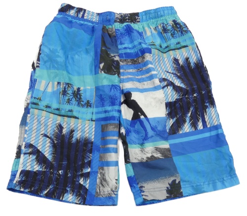 Modro-tmavomodré plážové kraťasy s palmami