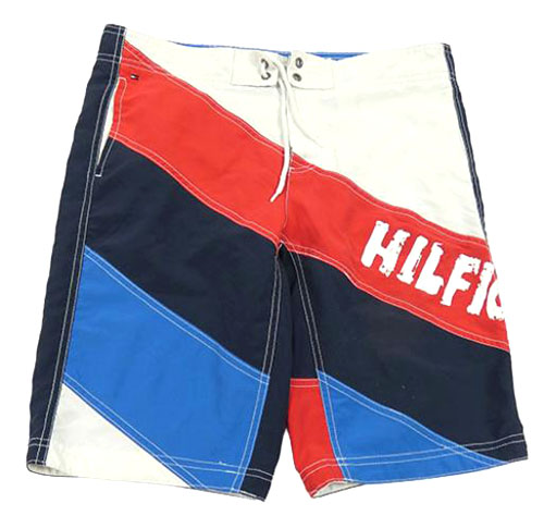 Bielo-červeno-modré plážové kraťasy s nápisom Tommy Hilfiger