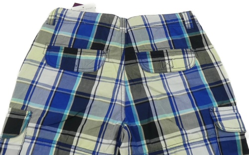 Nové - safírovo-bielo-tmavomodro-svetložlté kockované cargo plátenné kraťasy Charles Vögele