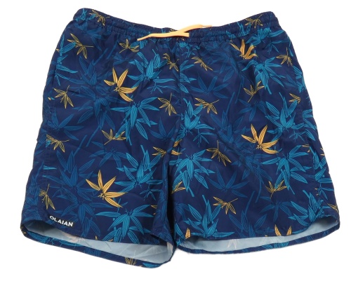 Tmavomodro-oranžové plážové kraťasy s listami Olaian