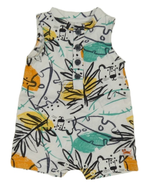 Bielo-čierno-farebný kraťasový overal s listami a zvieratkami Nutmeg