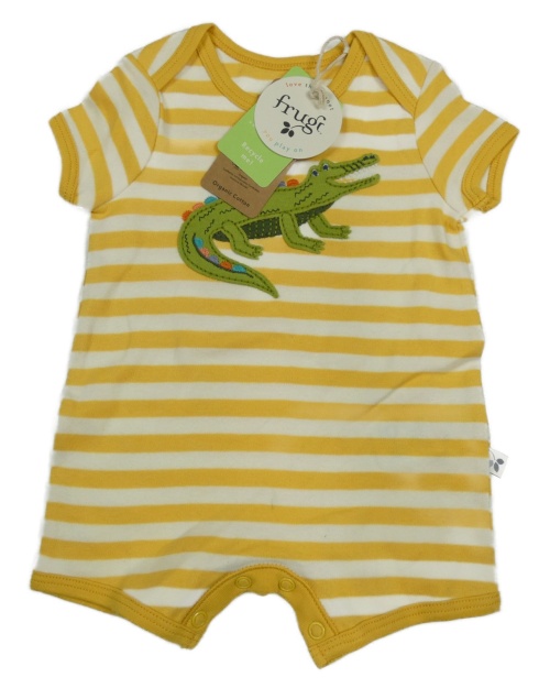 Nové - Žlto-biely pruhovaný kraťasový overal s krokodílom Frugi