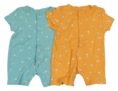 2x bavlnený kraťasový overal s palmami a sluníčky - oranžový + azurový
