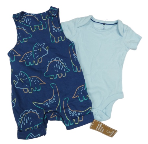 -Nové 2set- tmavomodrý kraťasový teplákový overal s dinosaury+ modré body Mothercare