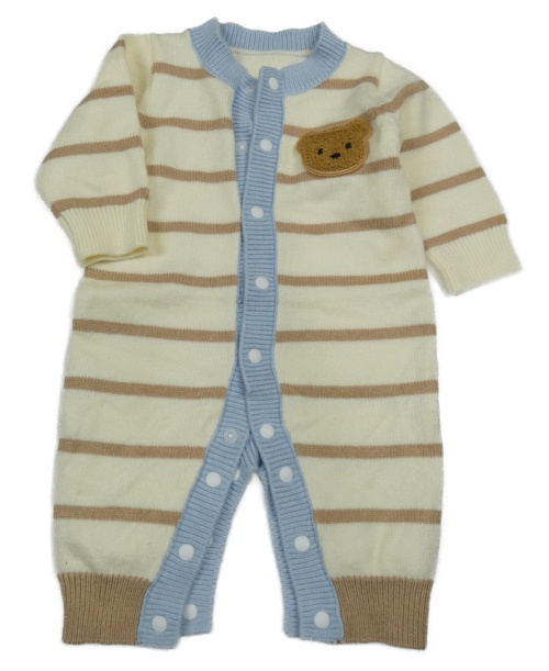 Smetanovo-béžovo-modrý pruhovaný úpletový overal s medvedíkom Shein