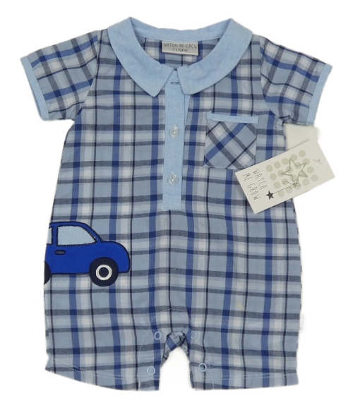 Nové - Světlemodro-modrý kockovaný plátenný kraťasový overal Watch me grow