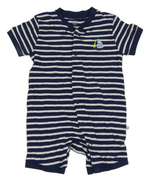 Tmavomodro-biely pruhovaný kraťasový overal s plachetnicou Liegelind
