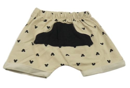 Béžovo-čierne plátenné kraťasy s Mickeym